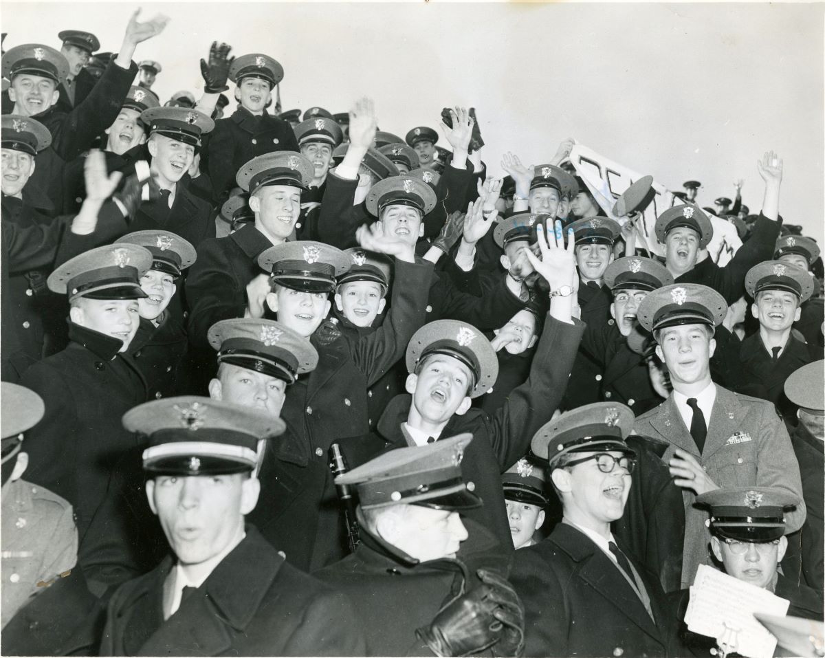 School uniforms have been an integral part of the student experience at McDonogh. Whether military or civilian, the ever-evolving uniform has provided continuity, stability, and a sense of identity for all who wore them. Issued to all boys entering the school beginning November of 1873, military uniforms were required dress until the program was abolished in 1971. During that century, there were many variations of the uniform, and styles changed, overlapped, and/or were occasionally modified. For 45 years beginning around 1904, students wore the West Point pattern jacket. Over the years, minor modifications were made—black trim, sky blue trim, bottom slits, then no slits—until a totally different jacket style was introduced in the fall of 1949, the Eisenhower (or “Ike” jacket). In 1956, the Eisenhower jacket was replaced by what was generically referred to as the “dress jacket,” which was worn by students until the military program ended.