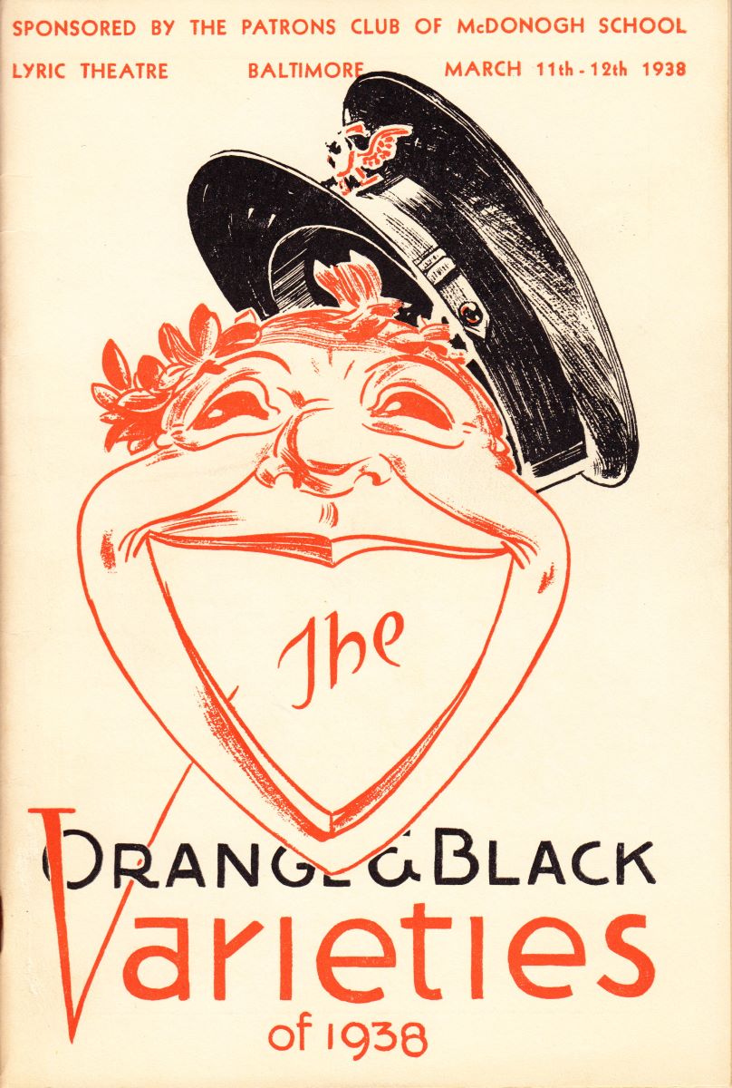 In 1933, the Orange and Black Varieties, sponsored by the Patrons Club, was held at the Maryland Casualty auditorium before an audience of 1300, including the governor and mayor. The production featured guest artists with 125 McDonogh boys as “background.” At its peak in 1938, the annual show packed the Lyric Theater for two nights, and every boy in the school participated in some fashion. The variety show featured instrumental groups, soloists, choral groups, skits, and more. Full-size billboards announced the event in downtown Baltimore. Six hundred cadets participated in the show in 1942 with proceeds going to war bonds. By 1947, the Orange and Black Varieties became cost-prohibitive and the curtain closed on the once-popular event.
