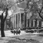When Allan Building was complete, a water tower was built adjacent to Farm Road, and every building on campus was gravity-fed off the tower. According to former Director of Facilities Steve Simmers ’70, someone went to the pump house every day to make sure the waterwheel was doing 13 revolutions per minute in order for the right amount of water (30,000 to 40,000 gallons a day) to be pumped up to the top of the tower. In June of 1987, after the transition to city water, the landmark water tower—which stood in the vicinity of what is now the boarder parking lot—was taken down.