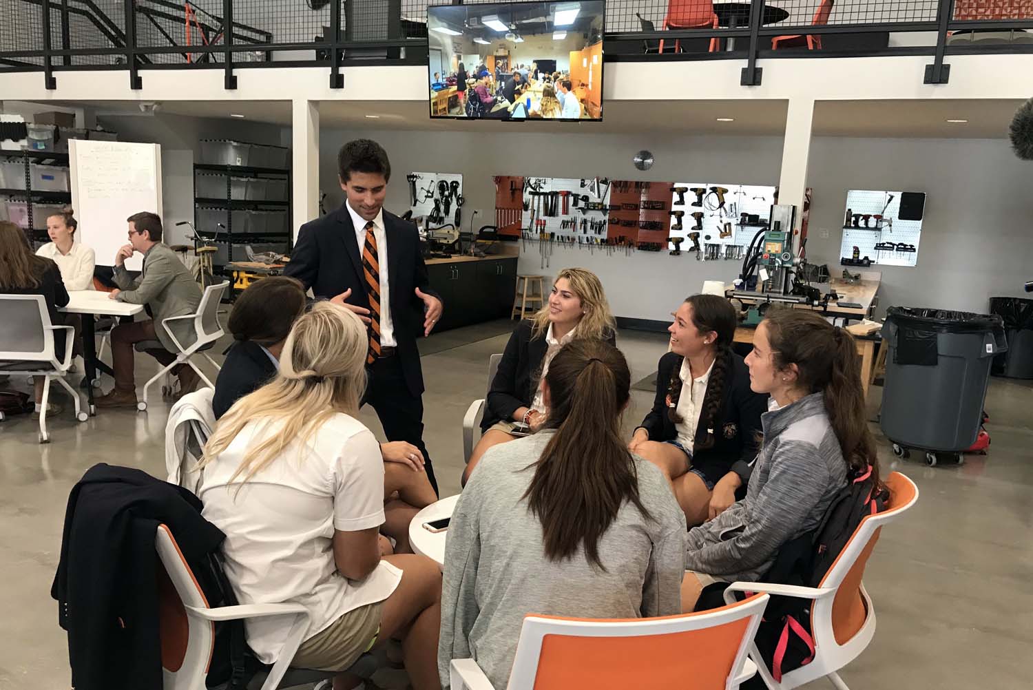 The 7,000-square-foot Fader Innovation Center, which opened in 2018, was designed with flexibility in mind. It houses McDonogh’s robotics and engineering programs as well as an auto bay where students can directly experience the fundamentals of physics, math, and chemistry by working on cars. It is a place where LifeReady experiences unfold each and every day—a place where students communicate with one another about projects, solve problems alone or in groups, and think in terms of the greater good. Students welcome the challenge to try different ideas, and they feel comfortable going back to the drawing board until they land on a workable solution to a problem.
